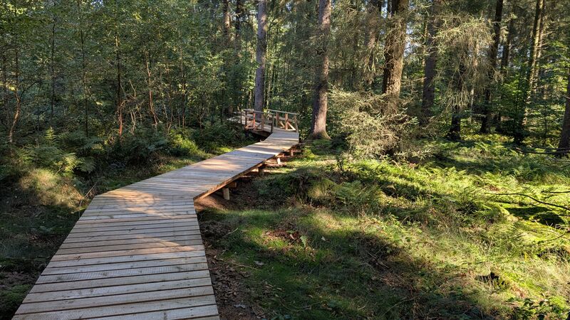 Am Schwarzwildgehege entlang und schon bald verlassen wir den Wald. Zum Abschluss geht es einen Kilometer über den Vennradweg zur Schlusseinkehr.