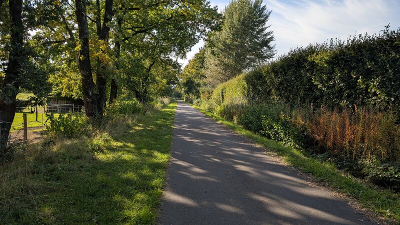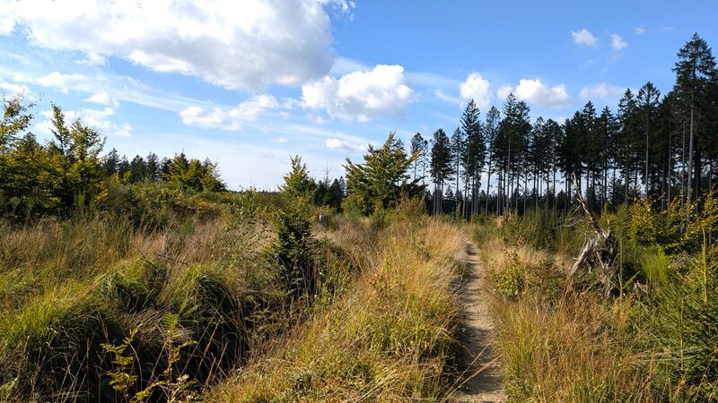 Am Schwarzwildgehege entlang und schon bald verlassen wir den Wald. Zum Abschluss geht es einen Kilometer über den Vennradweg zur Schlusseinkehr.