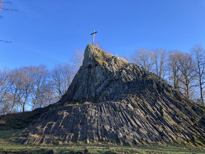 Wir starten in Betzdorf, treffen beim Verlassen des Ortes auf die Kapelle Kreuzland und erklimmen den ersten bewaldeten Berg – und staunen über die zahlreichen Hochspannungsleitungen. Bald sehen wir deren Anfangspunkt, das riesige Umspannwerk Dauersberg, das bei Sonnenschein mystisch glitzert. Wir wandern weiter durch den Wald zum schönen Fachwerkdorf Alsdorf. Nach einem längeren Waldabschnitt mit einigen Höhenmetern erreichen wir den Kreuzweg, der uns zum Höhepunkt der Tour führt, dem Druidenstein, einem bizarren, etwa 20 Meter hohen, vor rund 25 Millionen Jahren entstandenen Vulkankegel. Der Sage nach waren die säulenförmigen Basaltstrukturen einst Kultstätte keltischer Druiden. Zum Abschluss führt der Weg hinauf zum Ottoturm, einem eleganten Aussichtsturm, der uns ein Panorama der Extraklasse bietet. Bei klarer Sicht reicht der Blick bis nach Siegen und darüber hinaus – das Siegerland liegt uns zu Füßen. Von dort oben geht es wieder hinab ins Siegtal zum Bahnhof Kirchen.