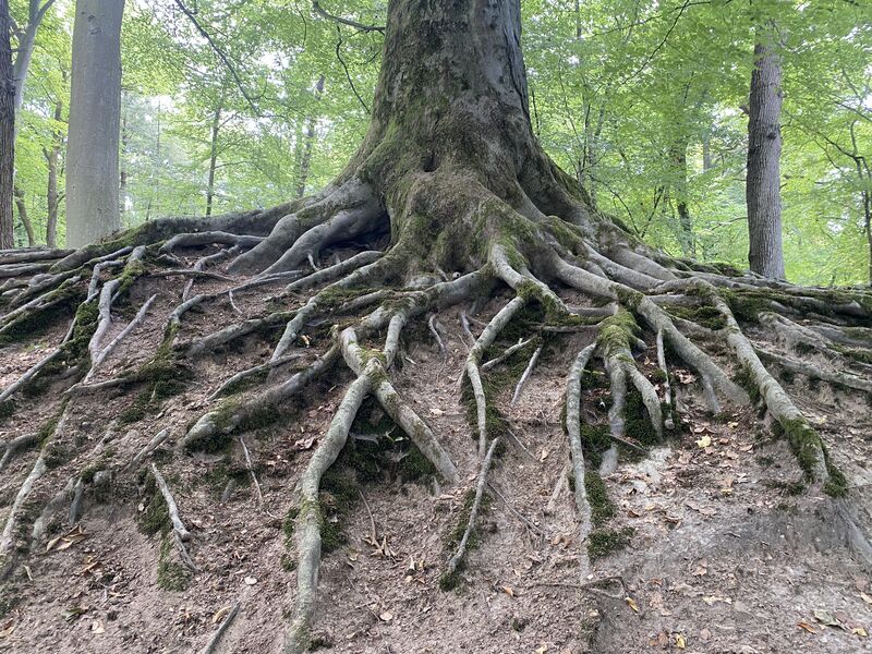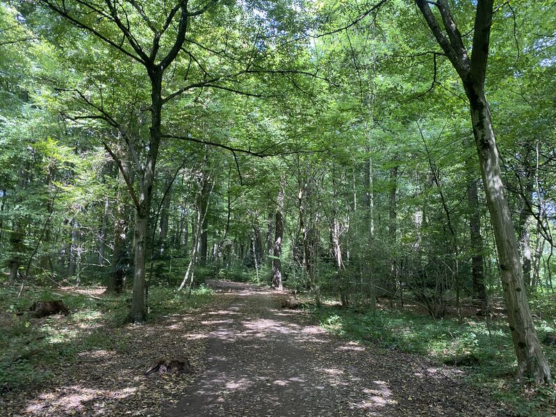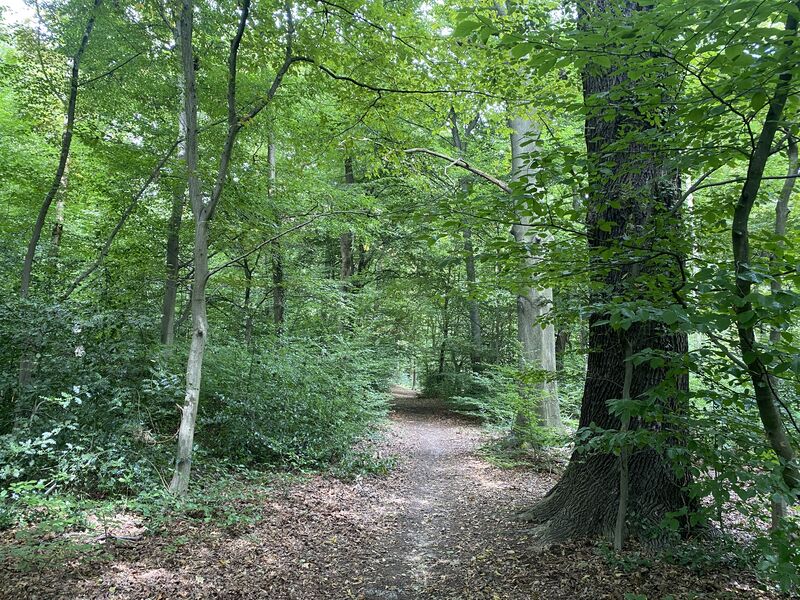 Die 14 km Anwanderung zum diesjährigen Mitgliedertreffen der OG Köln startet an der Endhaltestelle der Linie 9 in Königsforst. Dort treffen wir auf unsere Mitwanderer, die bereits von Eil aus losgewandert sind. Wir durchqueren nun gemeinsam den Königsforst über gut begehbare, breite Wege zur höchsten Erhebung Kölns, dem 118 Meter hohen Monte Troodelöh. Dort machen wir eine wohlverdiente Rast.