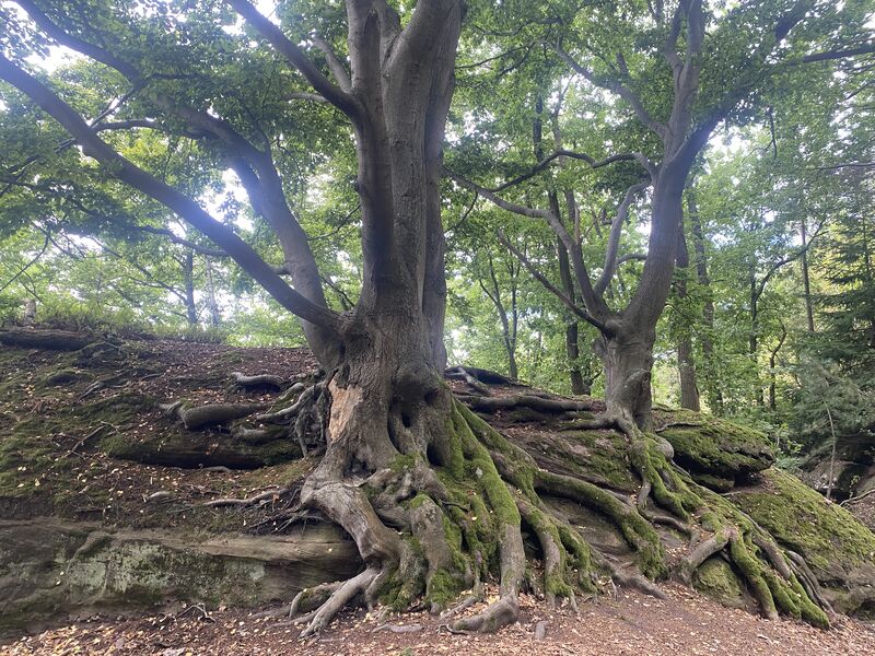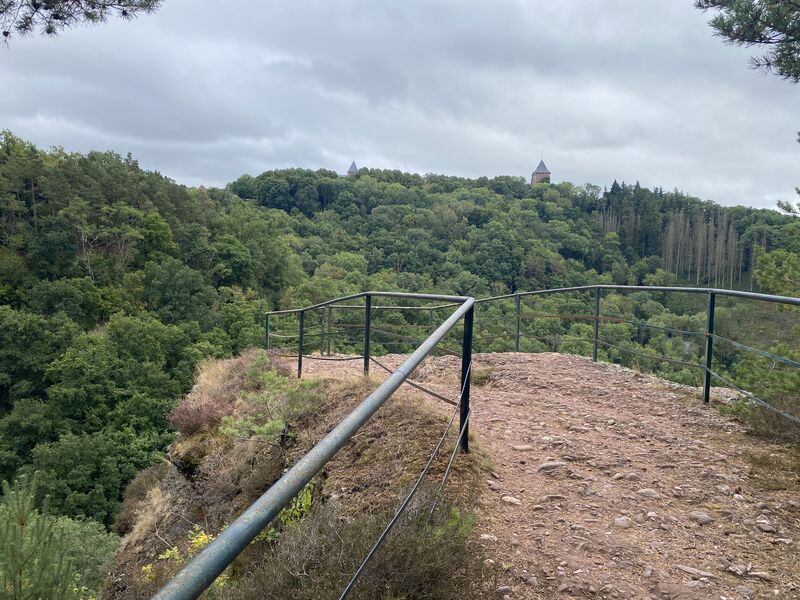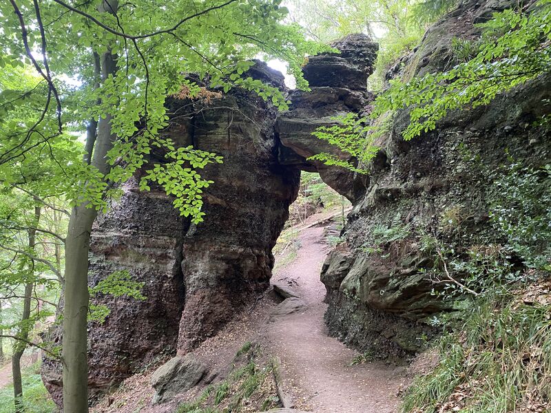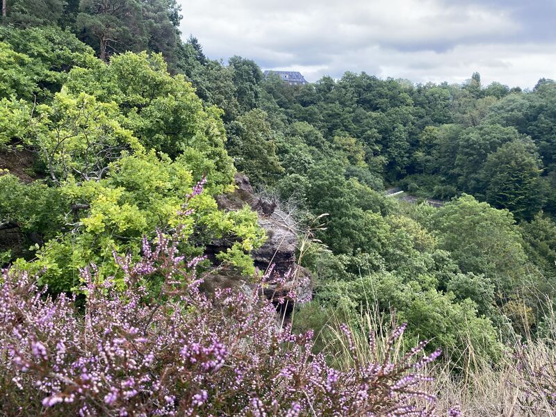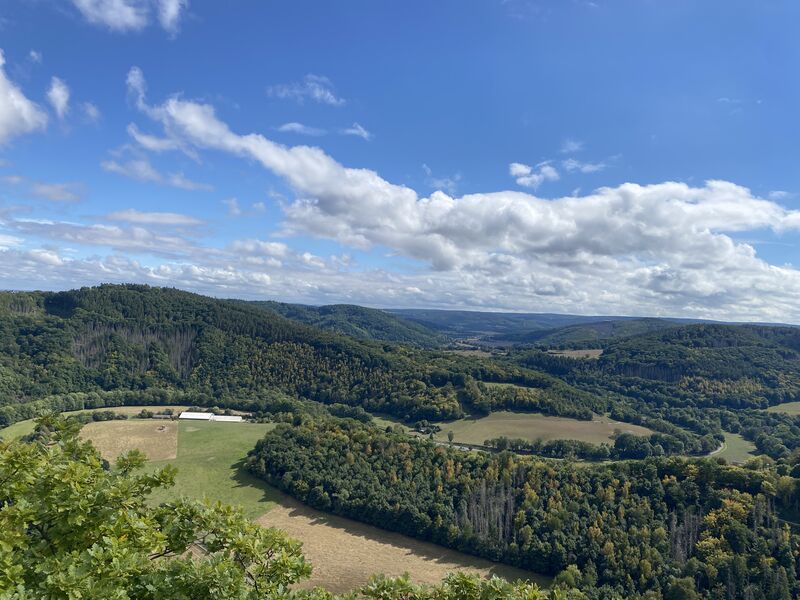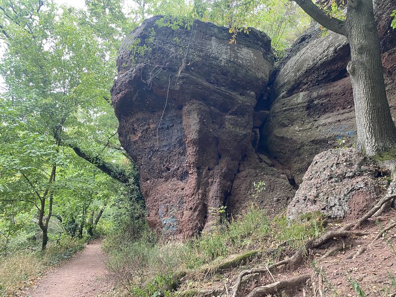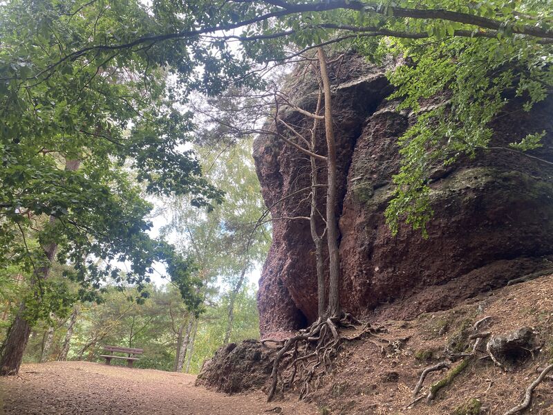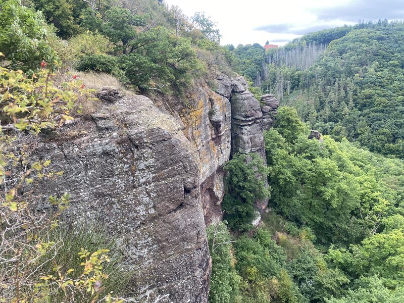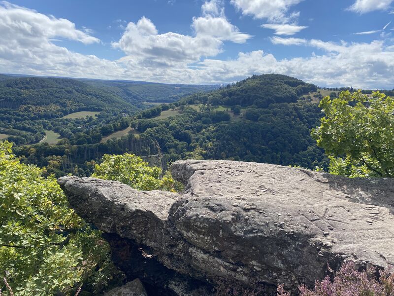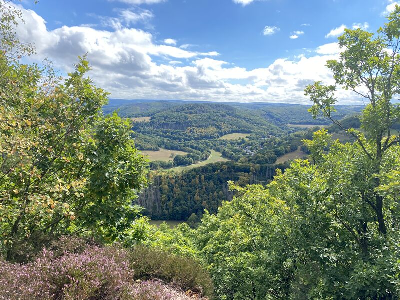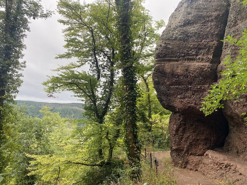 Felsen, Felsen, Felsen – soweit das Auge reicht. Die imposanten Buntsandsteinfelsen prägen das Rurtal und sind rund 220 Millionen Jahre alt. Die steilen Effels-Felsen sind ein Eldorado für Kletterer. Unser Weg verläuft von Abenden bis Obermaubach auf schmalen, zum Teil steilen Fels-, Wald- und Wurzelpfaden. Immer wieder eröffnen sich Panoramablicke auf das Rurtal und die Rureifel. Auf mächtigen Buntsandsteinfelsen thront die Burg Nideggen, die im Mittelalter als uneinnehmbar galt. Auf der Burg genießen wir den Ausblick bei einer Rast.