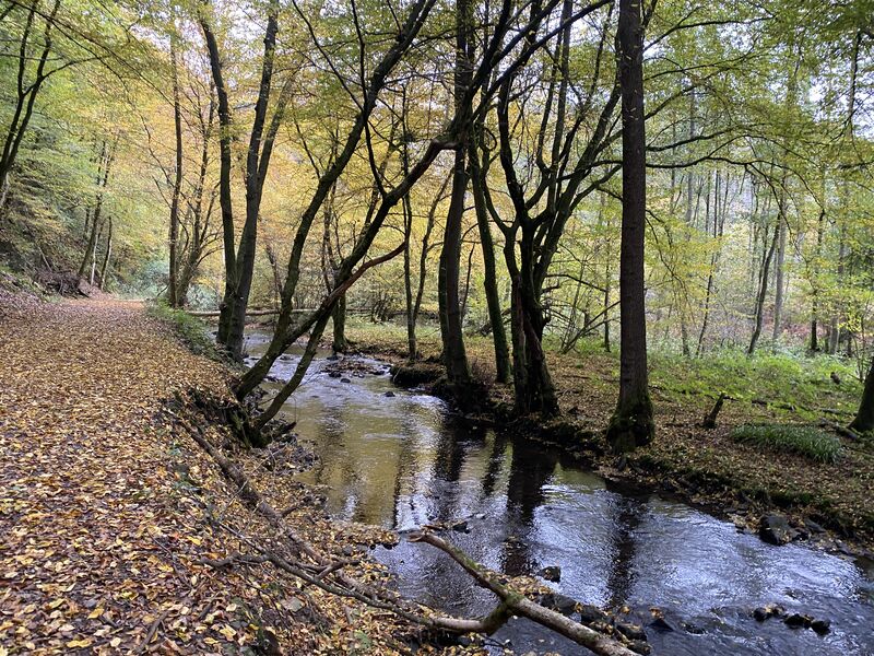 Diese 16 km Rundwanderung führt uns vom Thomashof bei Burscheid zunächst auf einem schmalen Wurzelpfad steil bergab zum Eifgenbach, dessen fröhliches Plätschern uns auf unserem weiteren Weg begleitet. Über Limmringhausen erreichen wir die Dhünn und wandern bis zur Dhünntalsperre, der zweitgrößten Trinkwassertalsperre Deutschlands. Entlang von Dhünn und Eifgenbach geht es zurück zum Thomashof, wo uns nach einem letzten Anstieg eine gemütliche Einkehr erwartet.