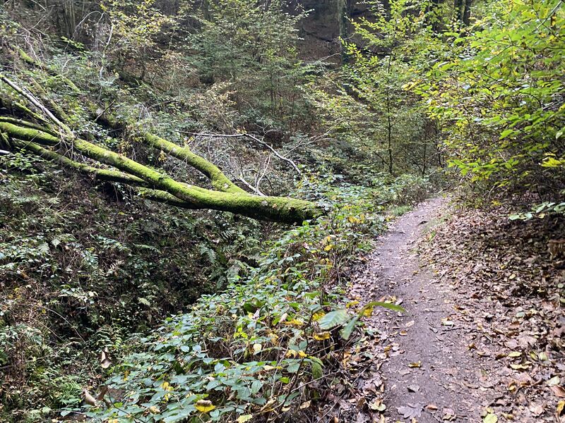 Sicherheitshinweis:  Trittsicherheit ist erforderlich. Insbesondere bei Nässe können einige Wegabschnitte sehr rutschig sein. Hier ist besondere Vorsicht geboten. Teilweise liegen umgefallene Bäume am Weg, die überwunden werden müssen.